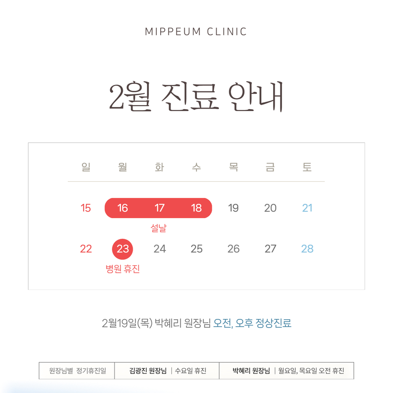 - 공휴일, 일요일 휴진 (매월 휴진일정안내 참고 )