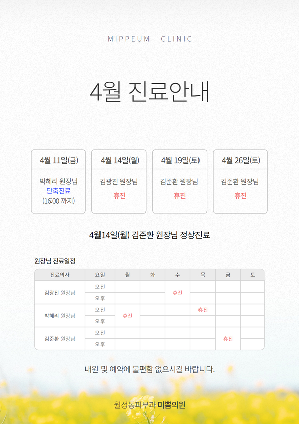 상호명 : 미쁨의원 대표원장 : 김광진 사업자등록번호 : 595-24-00784